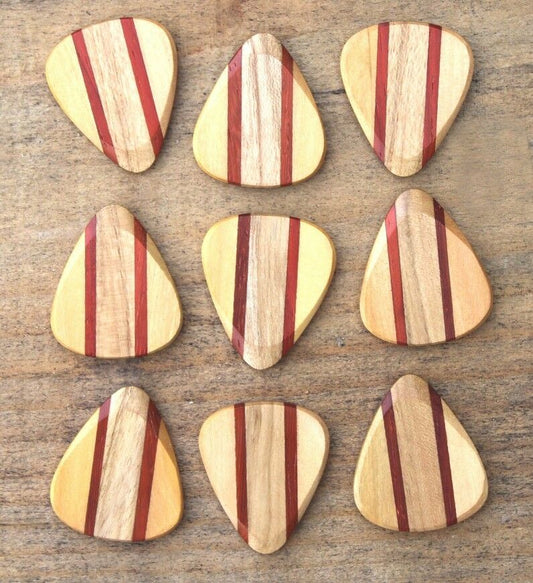 Maple, Padauk, & Teak Wood Guitar Or Bass Pick - 3.0 mm Ultra Heavy Gauge - 351 Wedge Shape - Natural Finish Handmade Specialty Exotic Plectrum