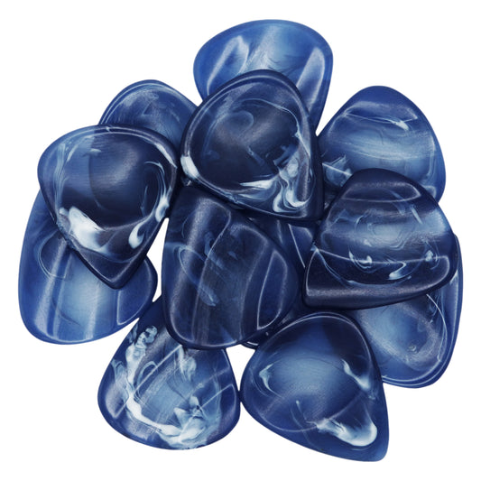 Dark Blue With White Swirls Resin Guitar Or Bass Pick - 3.0 mm Ultra Heavy Gauge - 351 Groove Shape - Polished Finish Hand Poured And Handmade Specialty Exotic Plectrum