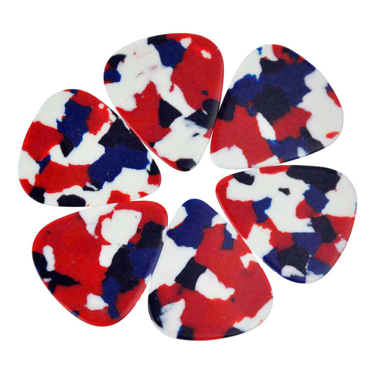 Celluloid Red, White, & Blue Mosaic Guitar Or Bass Pick - 0.71 mm Medium Gauge - 351 Shape
