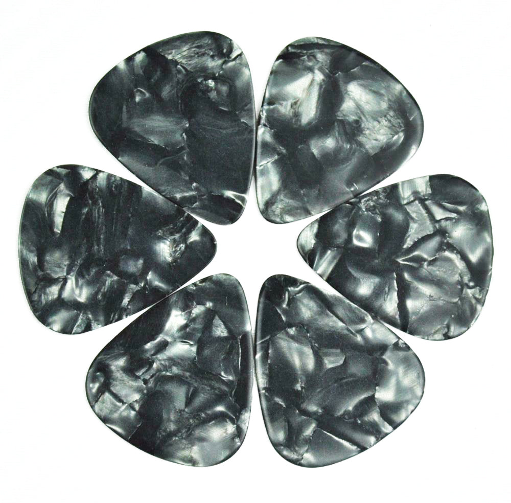 These extra heavy gauge celluloid guitar picks are Black Pearl colored with no printing or logo on them. Celluloid picks are the industry standard and have been the most popular pick material worldwide for many decades. These picks are a great choice for those who like the feel of celluloid picks at a great price.